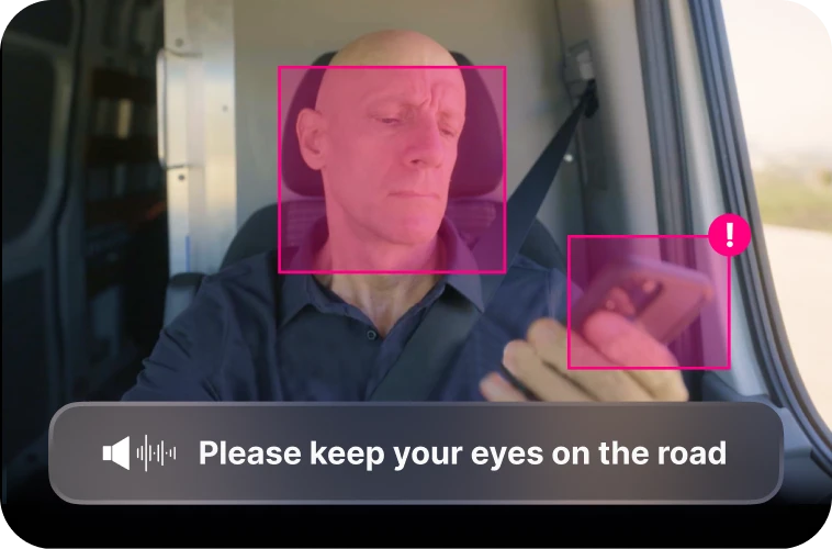 Our AI detection models recognize unsafe driving actions instantly. Audio and visual dash cam alerts enhance driver awareness in real time.